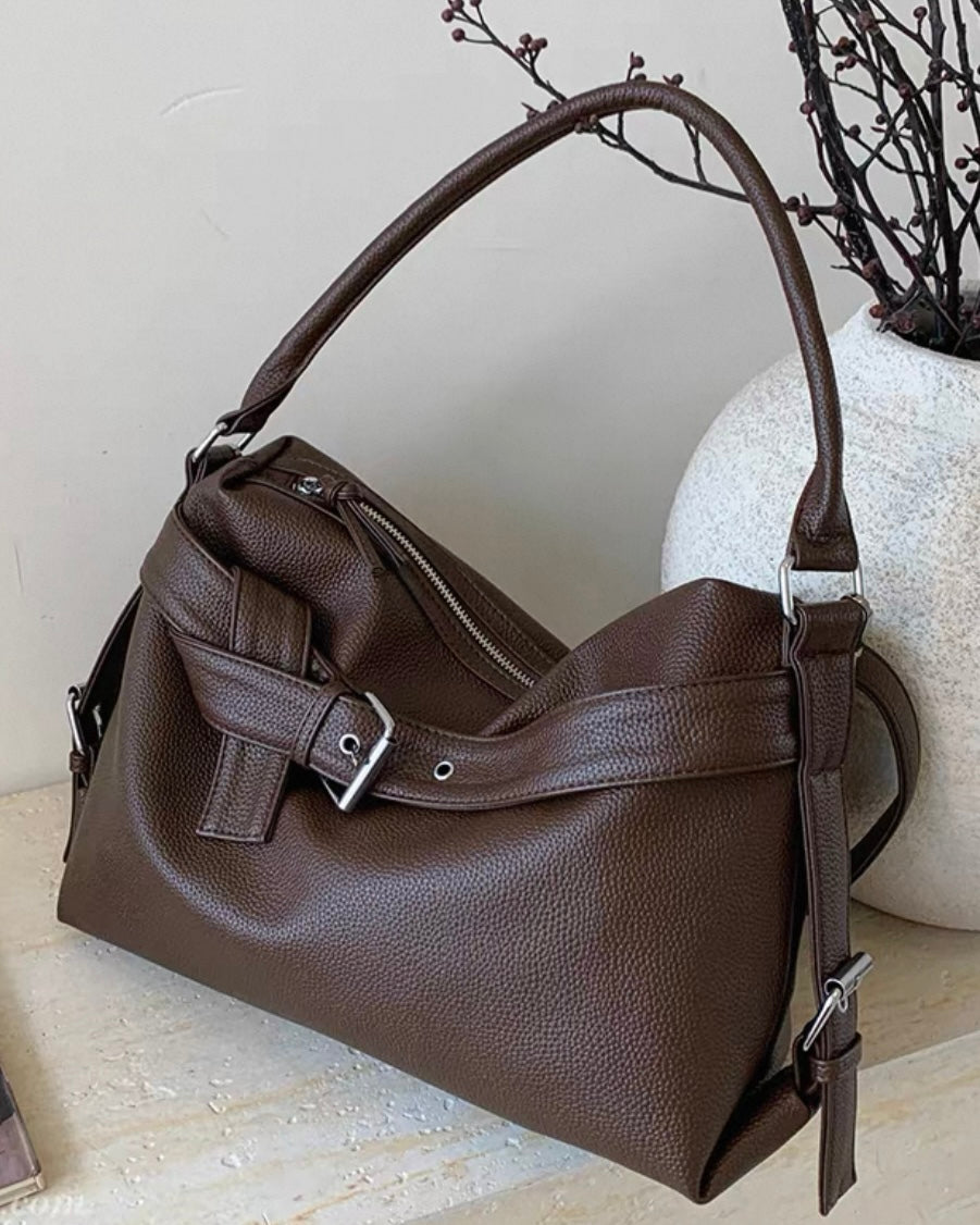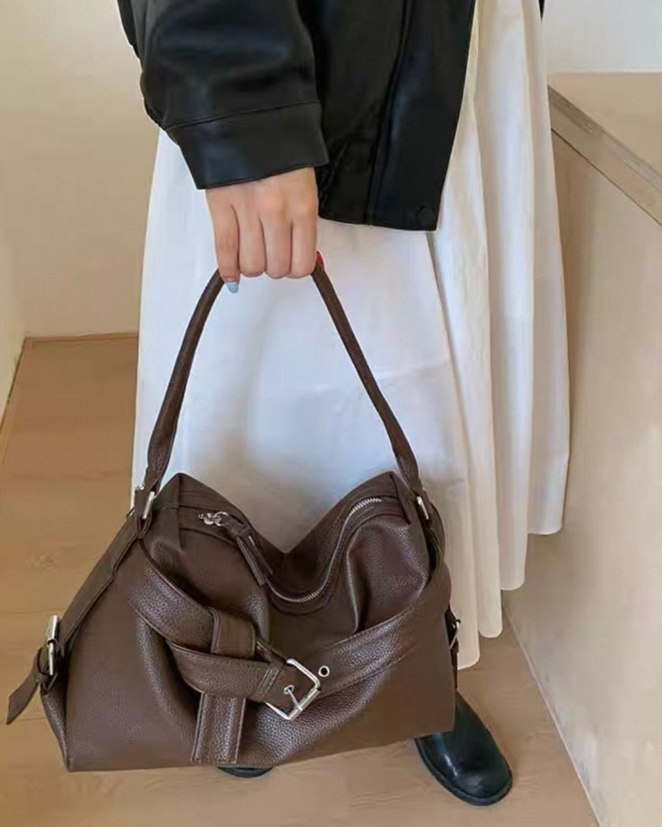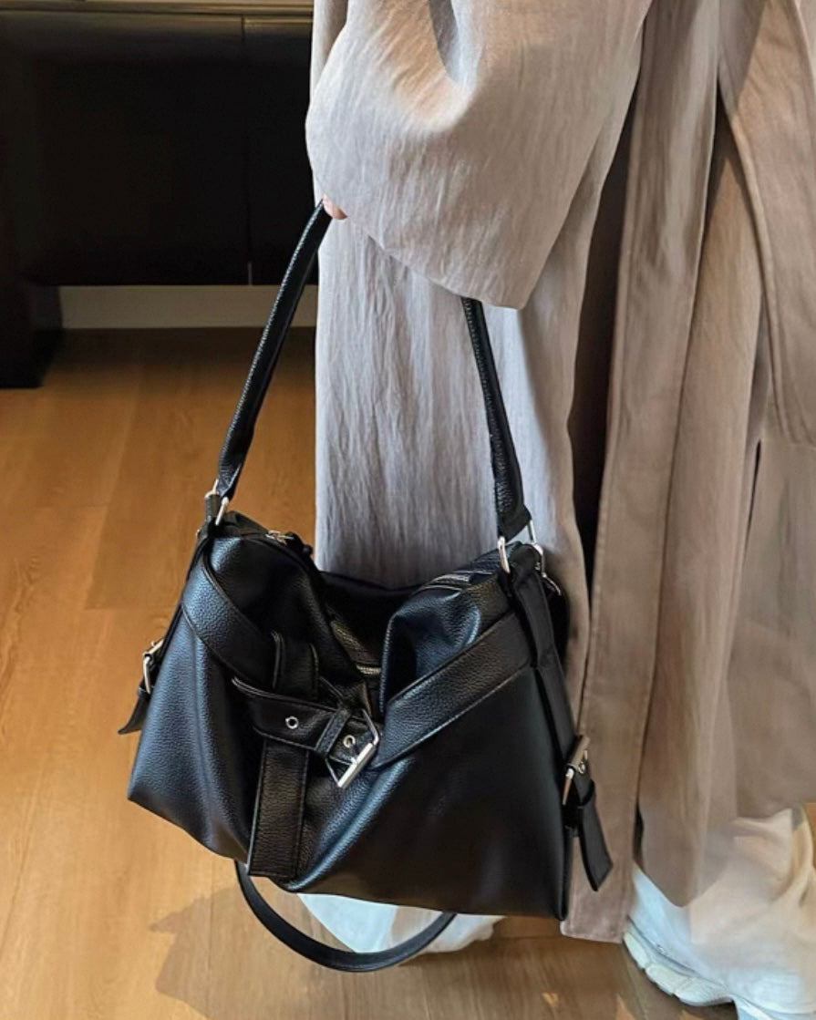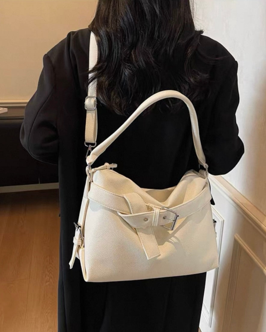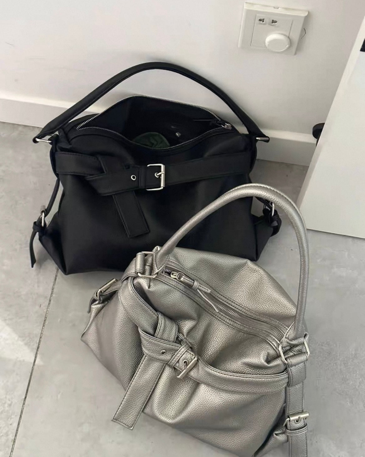 ワンカラーの使いやすいデザインと、目を惹くベルトデザインがアクセントに。