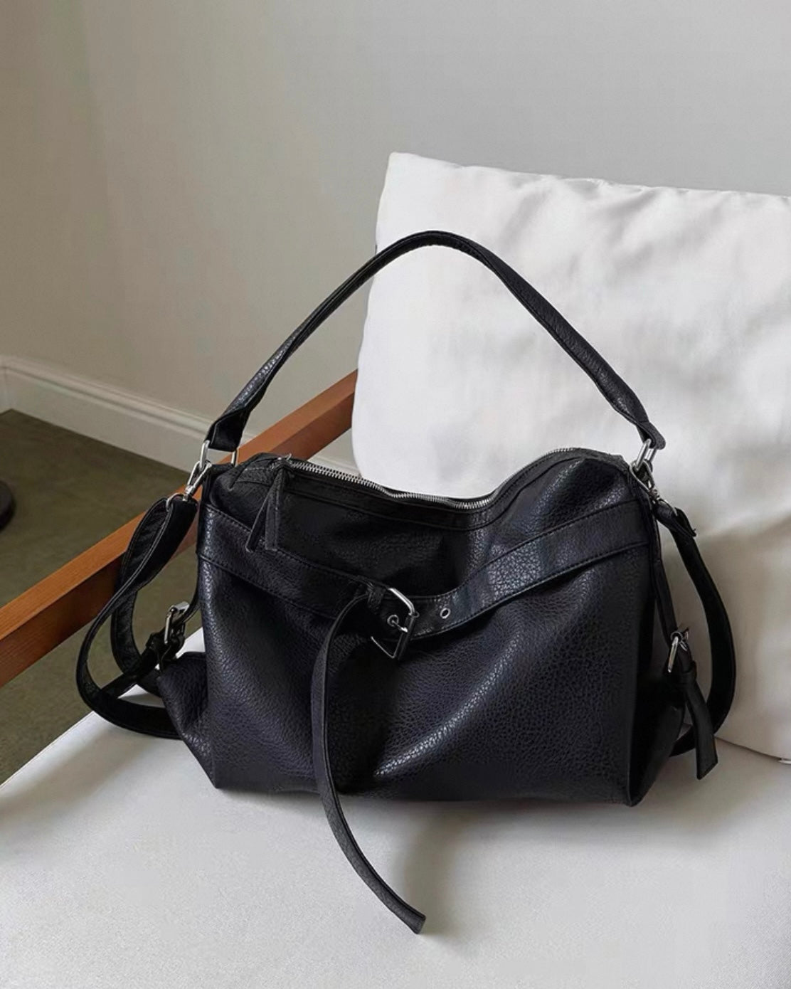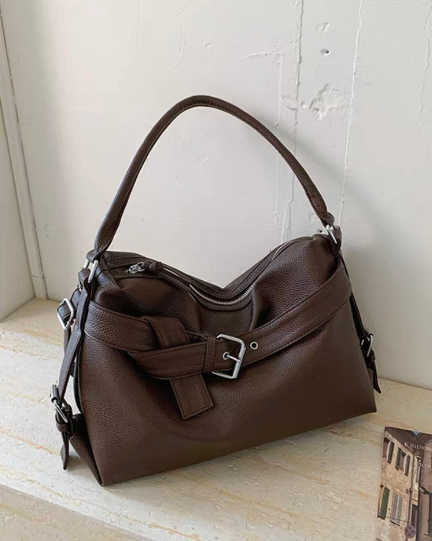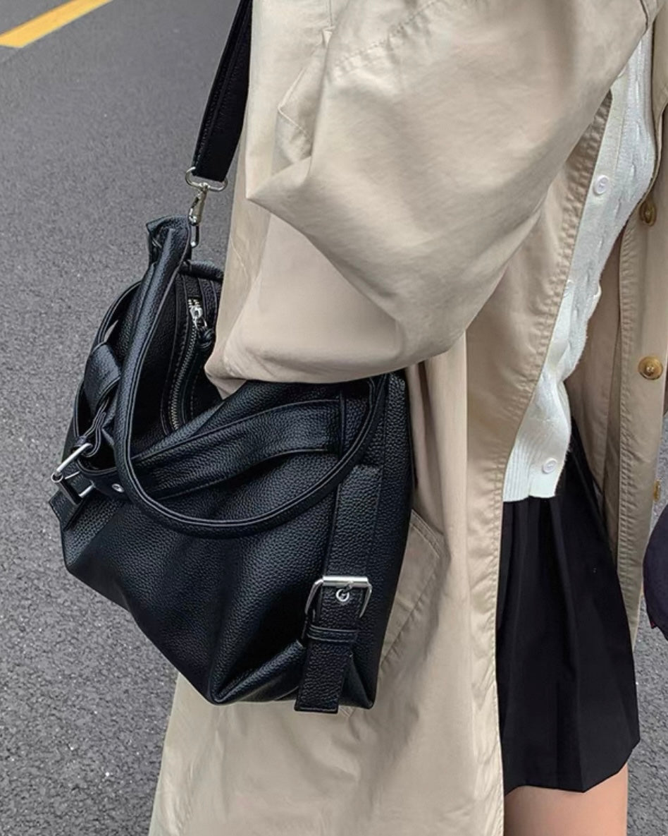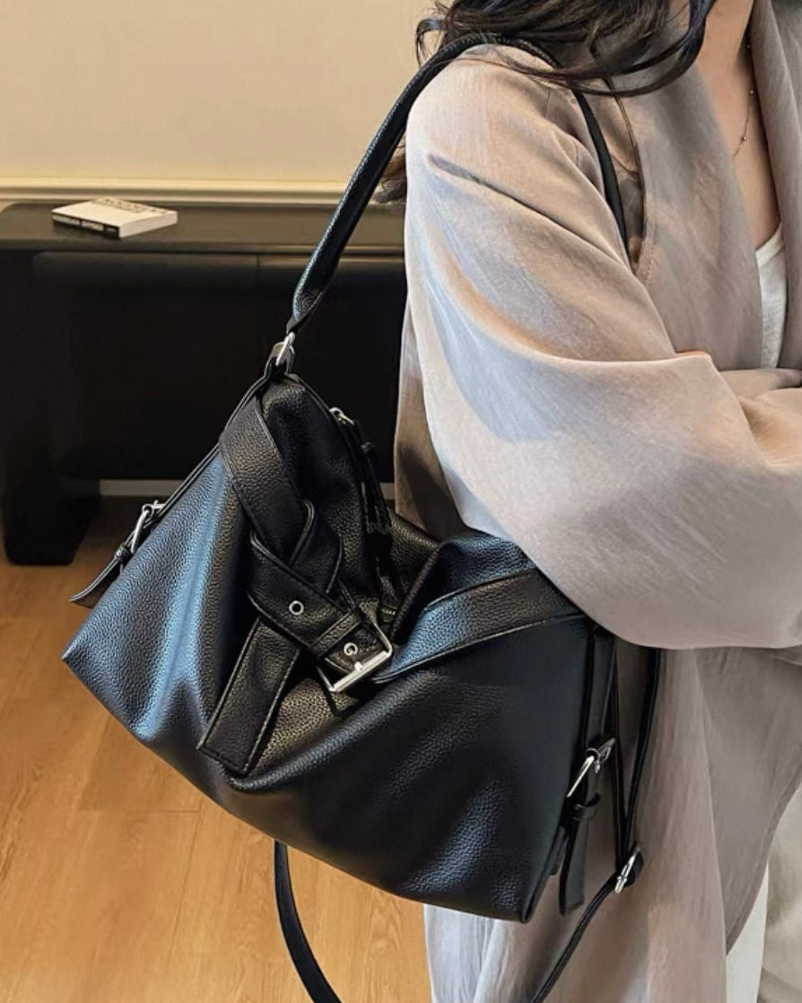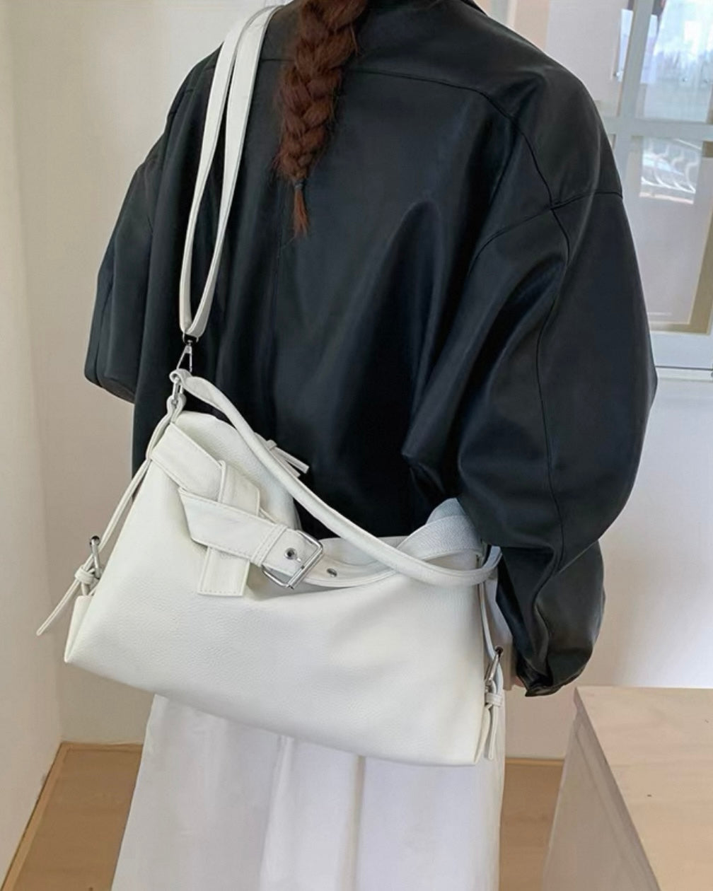ワンカラーの使いやすいデザインと、目を惹くベルトデザインがアクセントに。