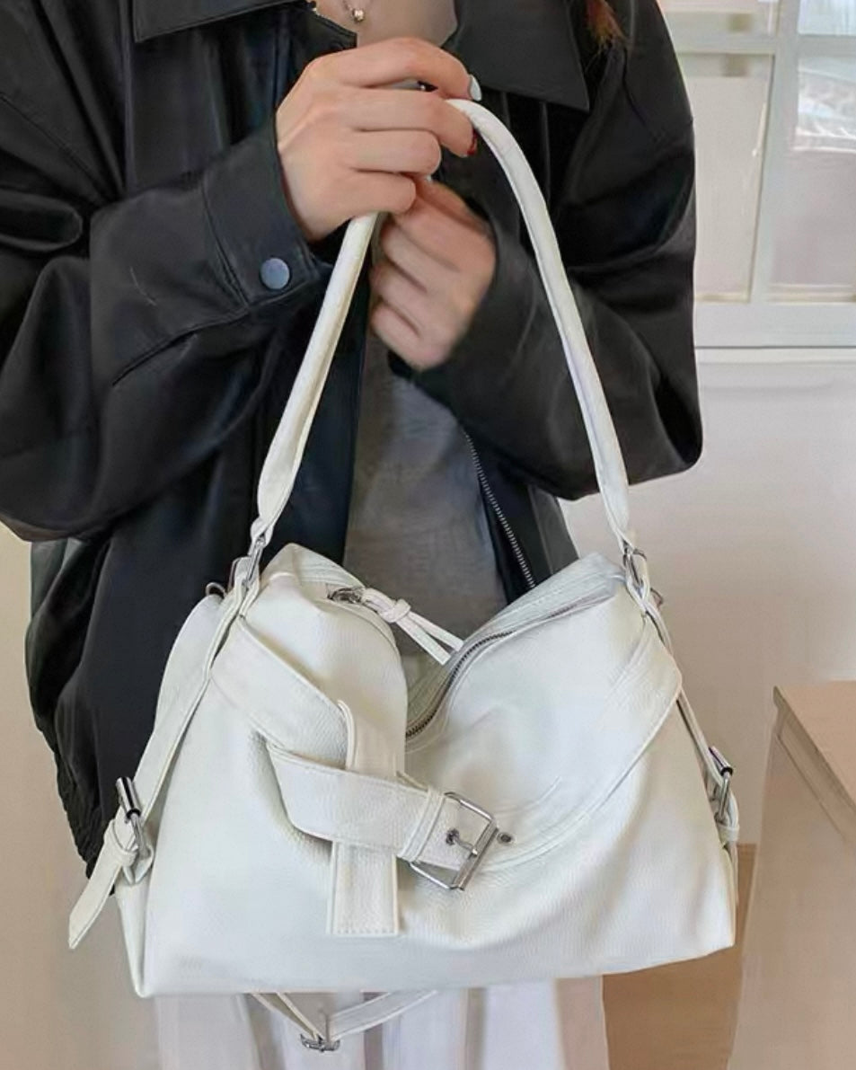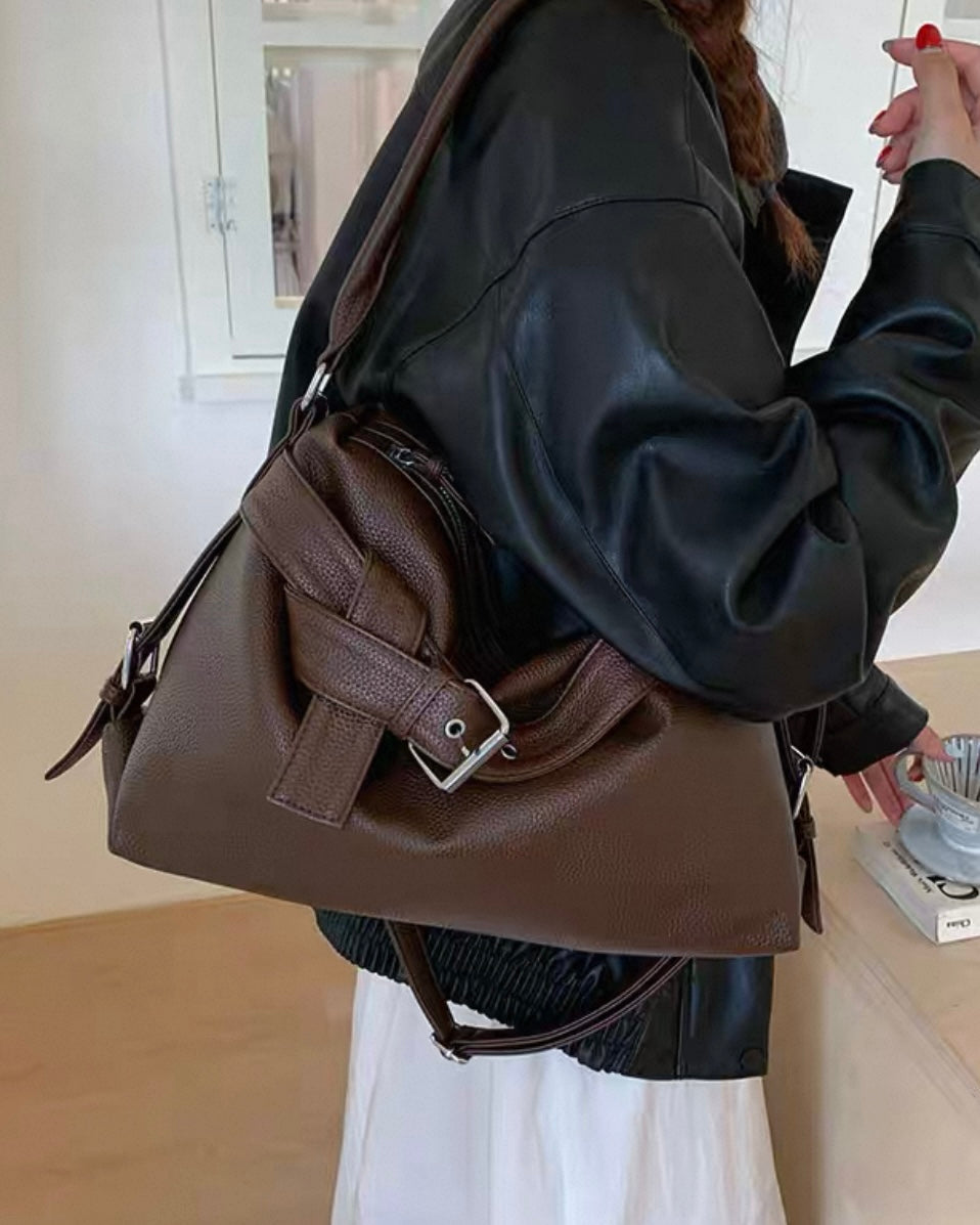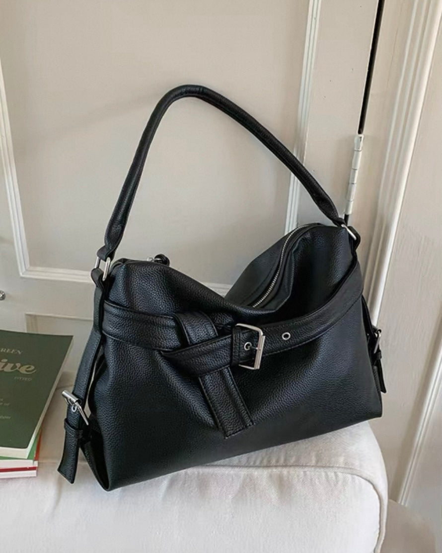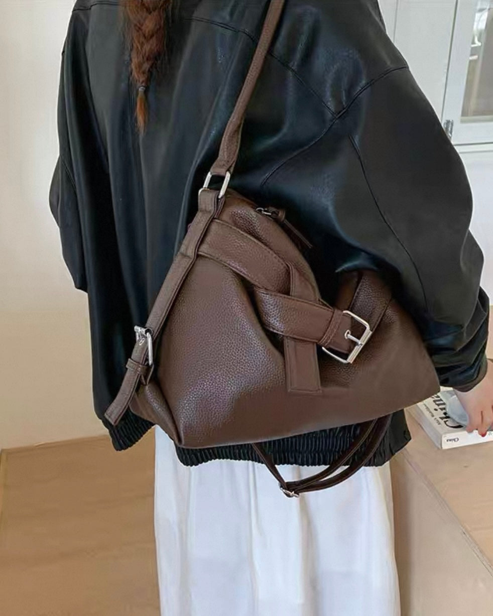 ワンカラーの使いやすいデザインと、目を惹くベルトデザインがアクセントに。