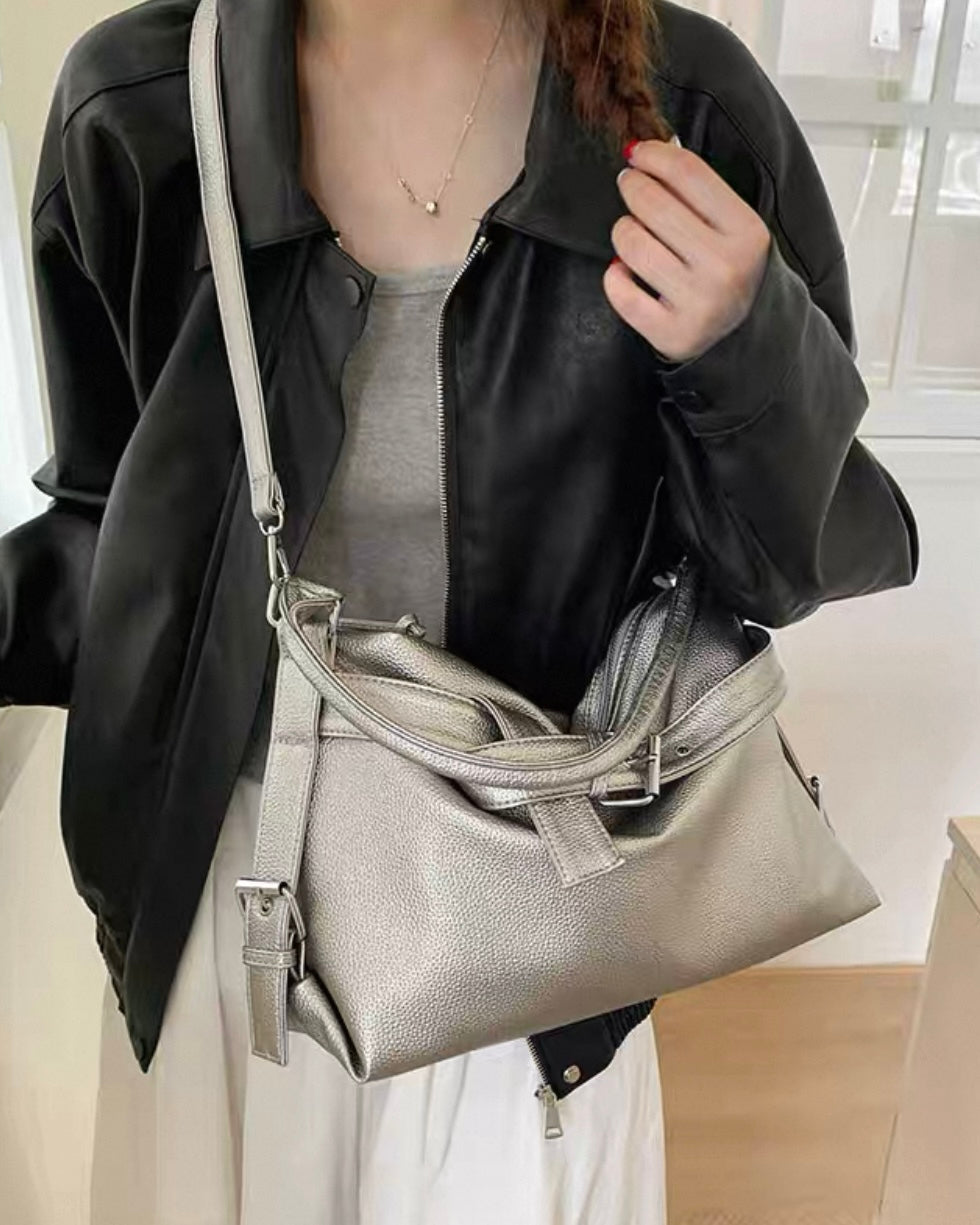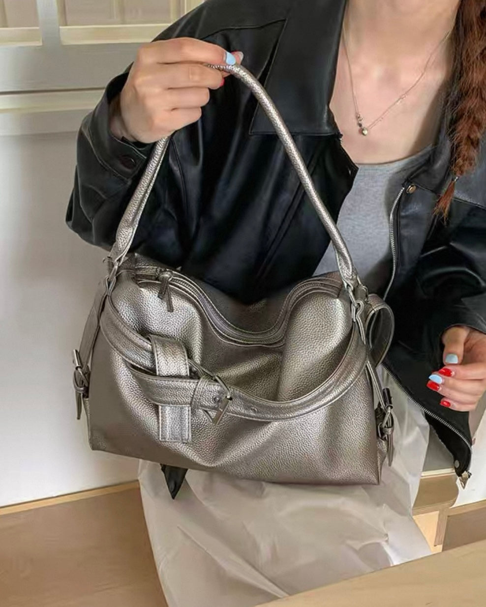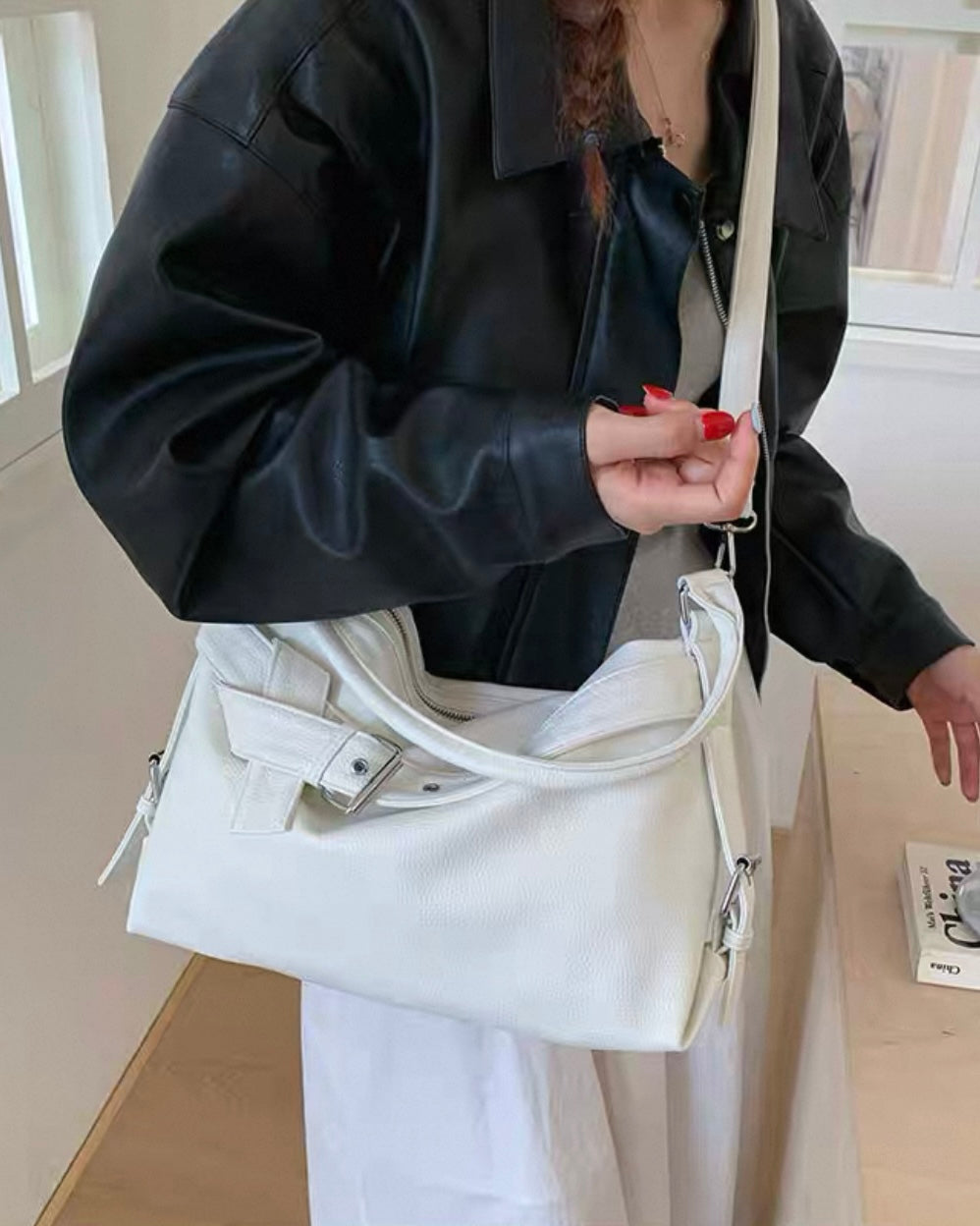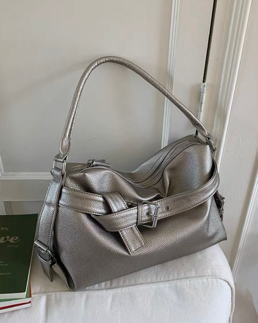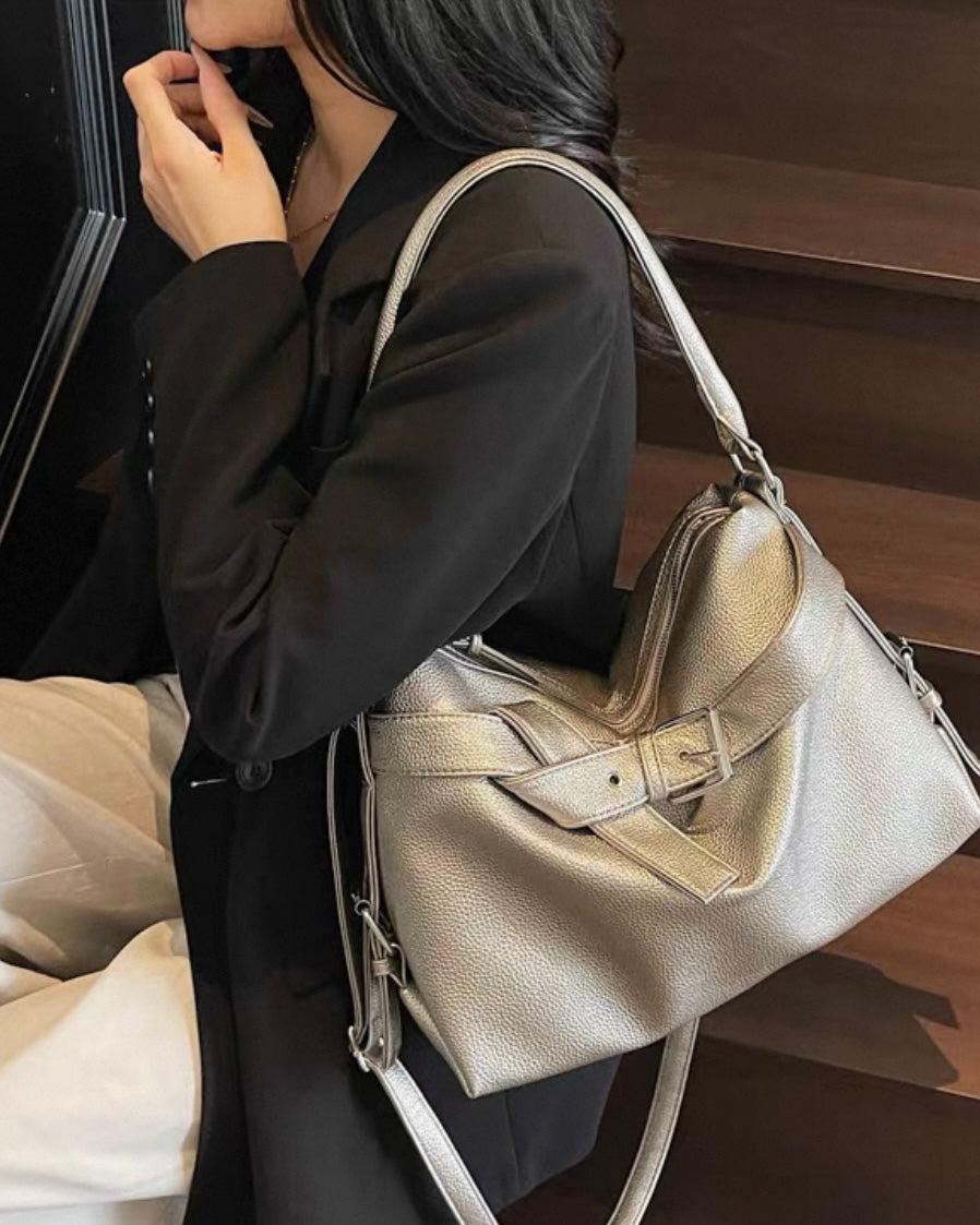 ワンカラーの使いやすいデザインと、目を惹くベルトデザインがアクセントに。