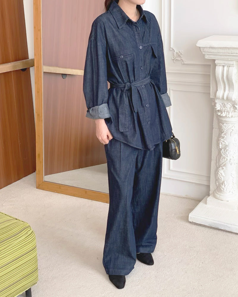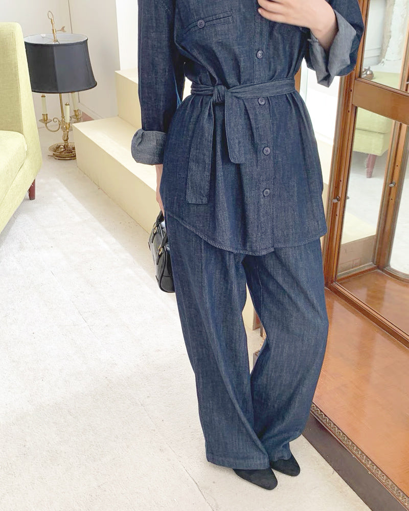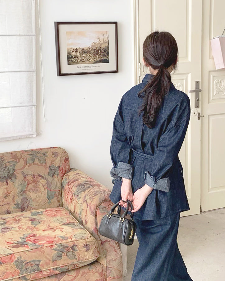 シーズンムードを高めてくれる、トレンド感あるこなれた着こなしが叶うデニムのセットアップ。