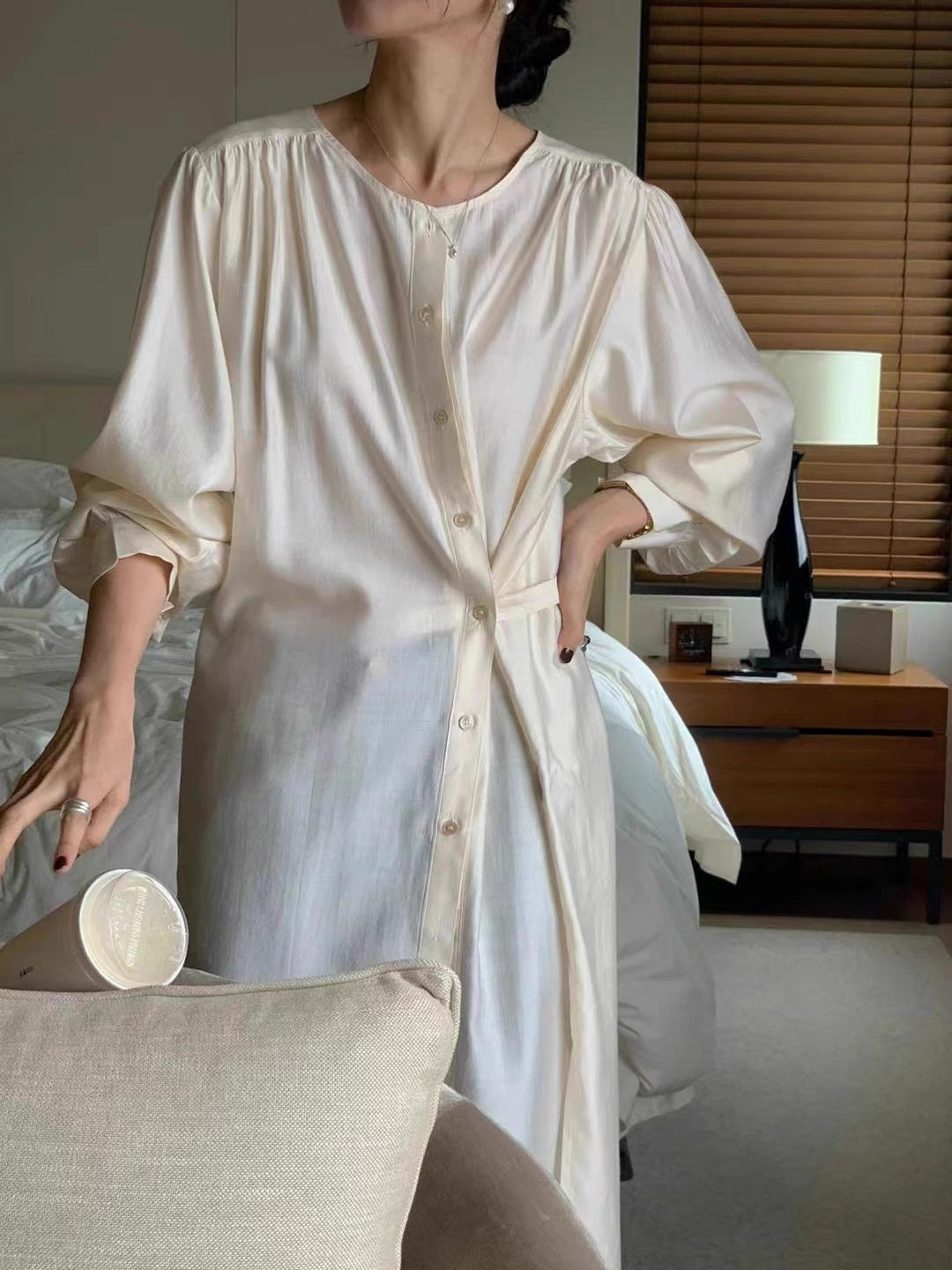着るだけでリラックス感あるこなれた雰囲気のシャツワンピース。
