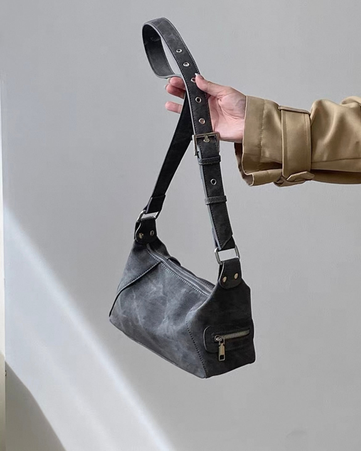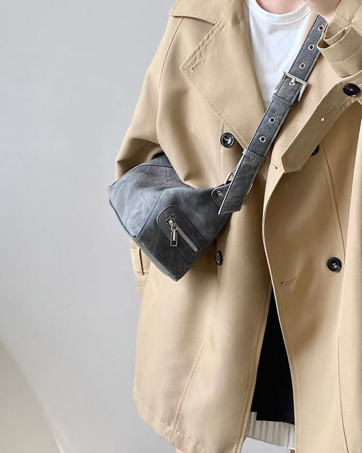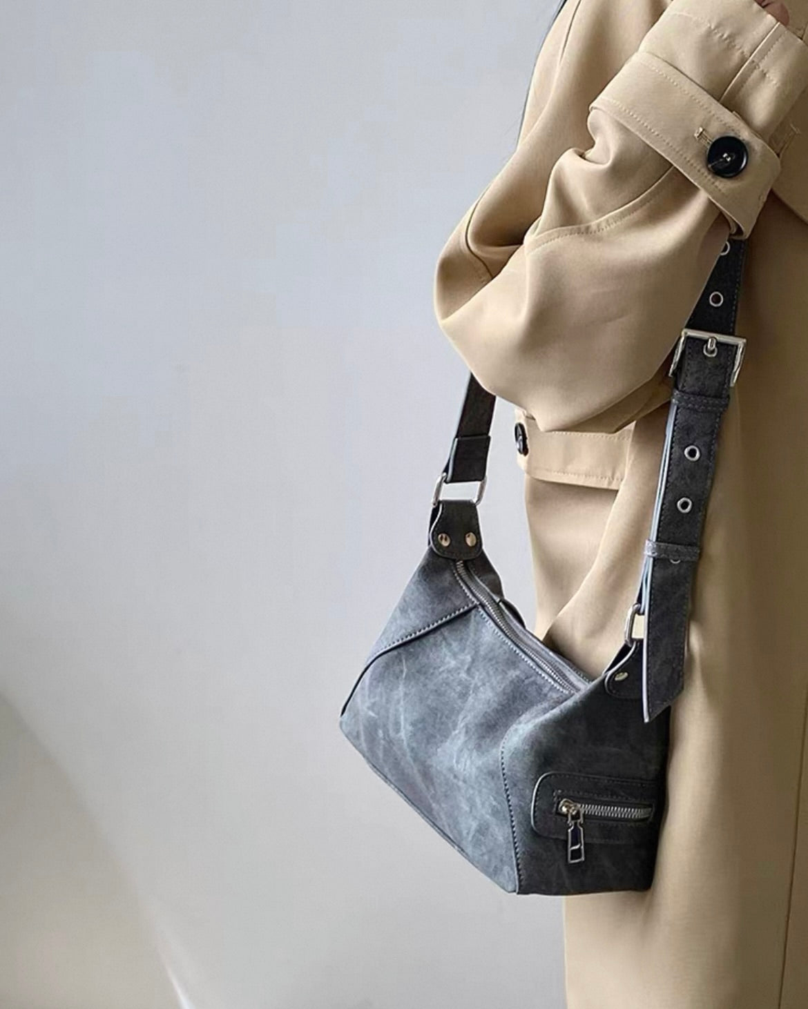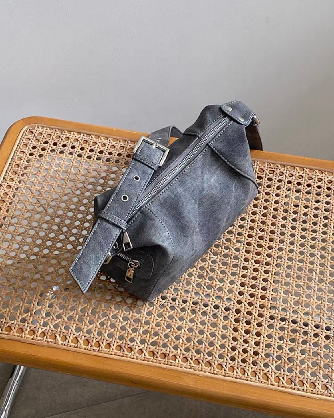 太めのベルトを採用したワンショルダーが今っぽく、黒デニムデザインがクールな印象に。