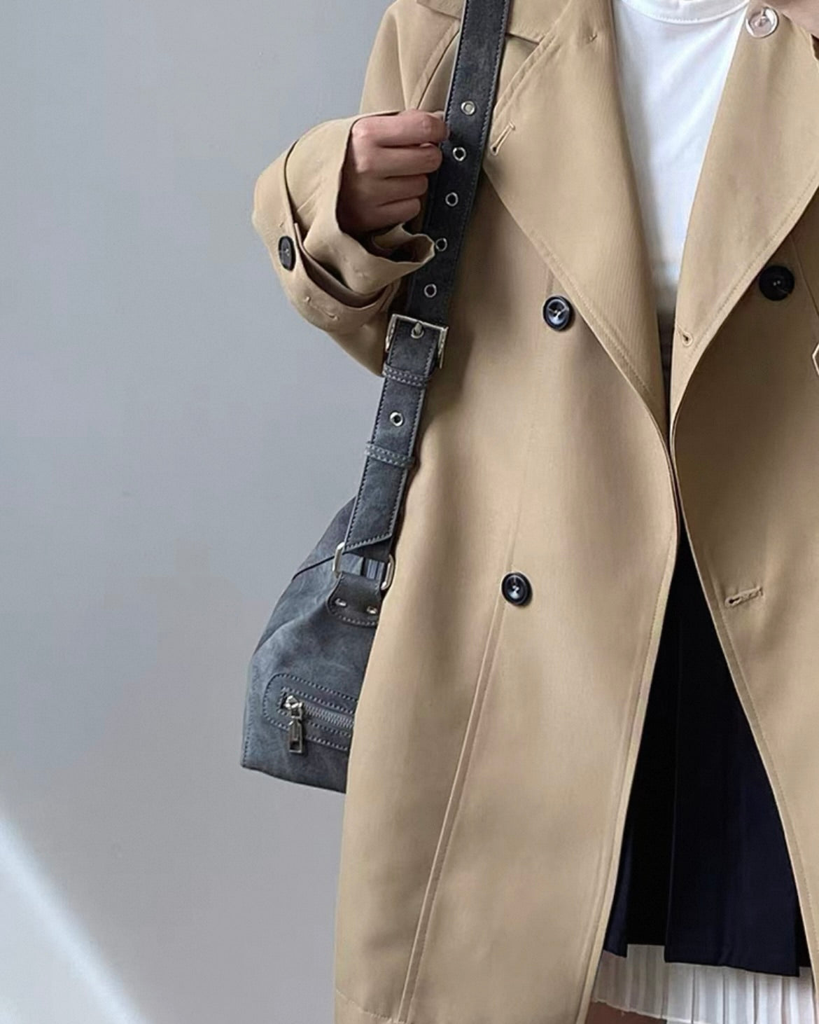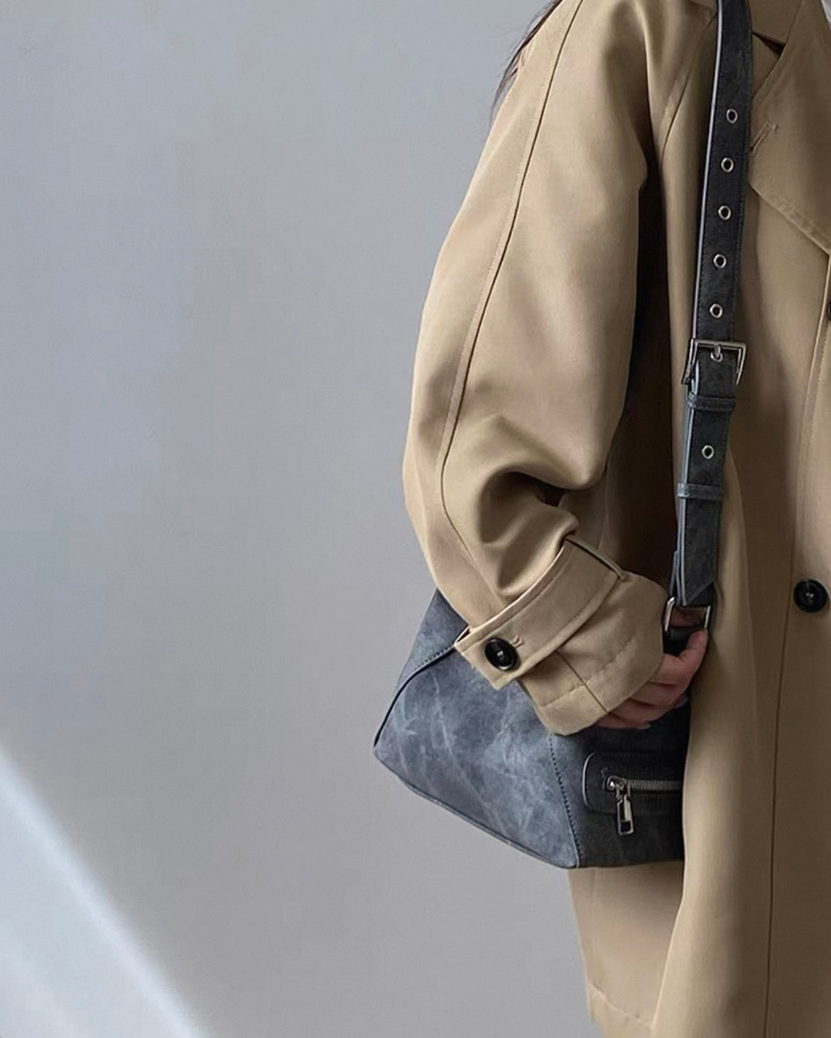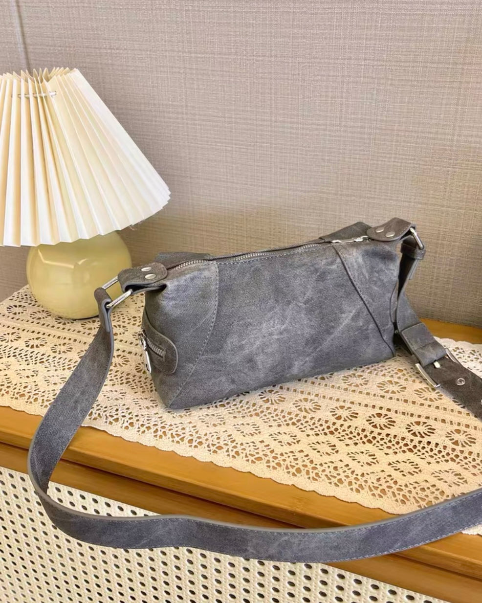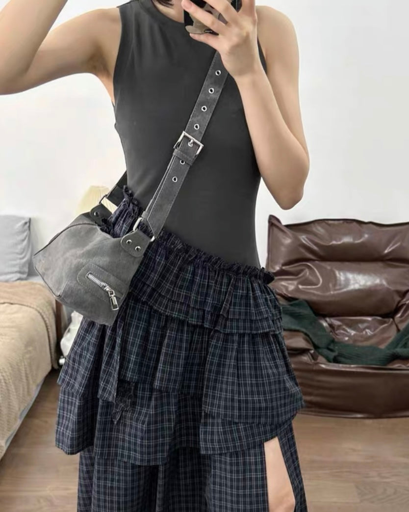 太めのベルトを採用したワンショルダーが今っぽく、黒デニムデザインがクールな印象に。
